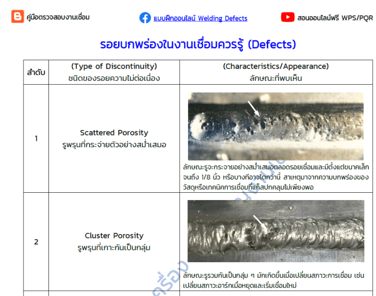 1. 👉 เผยหมด.!!!...วิธีการตรวจชัดๆ 27 ชนิดรอยบกพร่องที่คนงานเชื่อมต้องรู้ (Defects) ตาม AWS B1.11